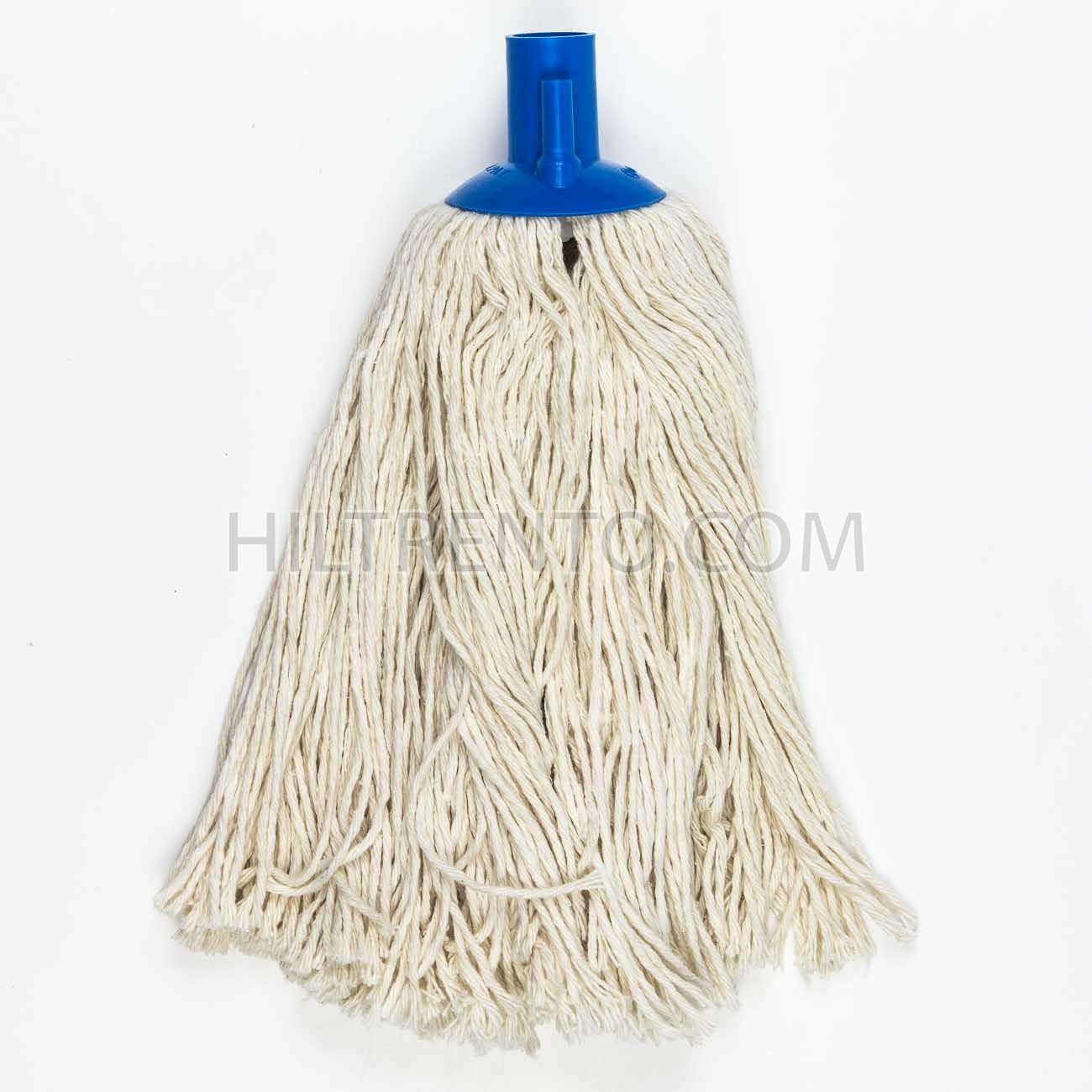 Fregona o mocho de hilo de algodón especial de alta absorbencia, limpia y seca profundamente. Con casquillo de plástico para su colocación en el palo de aluminio o madera. Gran suavidad para superficies delicadas.